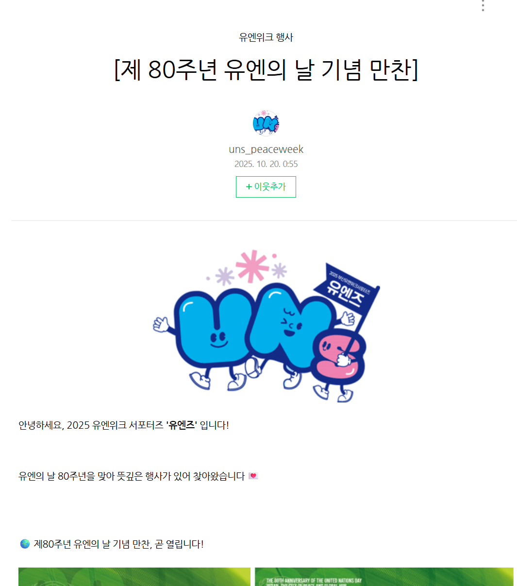 2025유엔위크 서포터즈 유엔즈의 인스타 그램을 통해