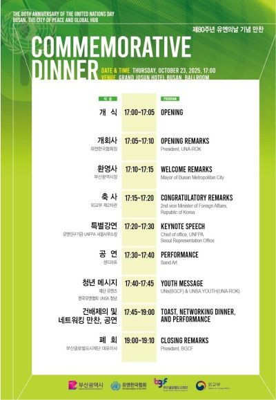 유엔의 날 기념만찬이뭔가요?세계 공통 국제기념일인 유엔의 날 (10.24)전야인 10월 23일,국제연합(UN)의 창설 80주년을 기념하는 의미를 담은 글로벌 연대의 장입니다.'20...